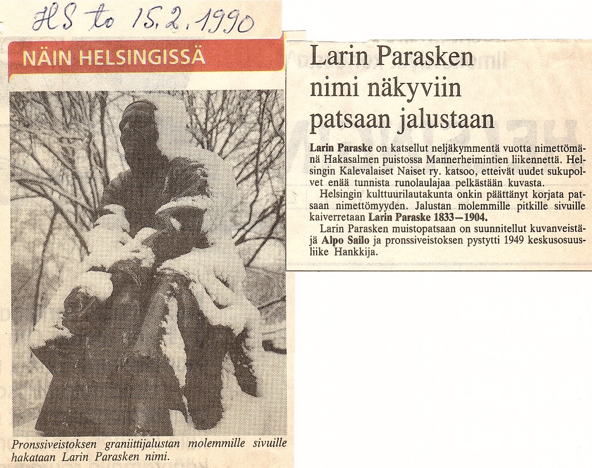Larin Paraske, milloin Raudussa oleva patsas on vihitty?